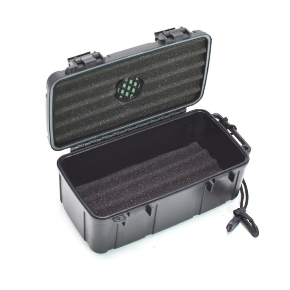 Deze reishumidor zwart is geschikt voor 15 longfillers. Deze humidor is gemaakt van een zeer stevig speciaal kunststof en voorzien van een speciale urethaanschuimen binnenzijde waardoor de sigaren veilig mee op reis kunnen.